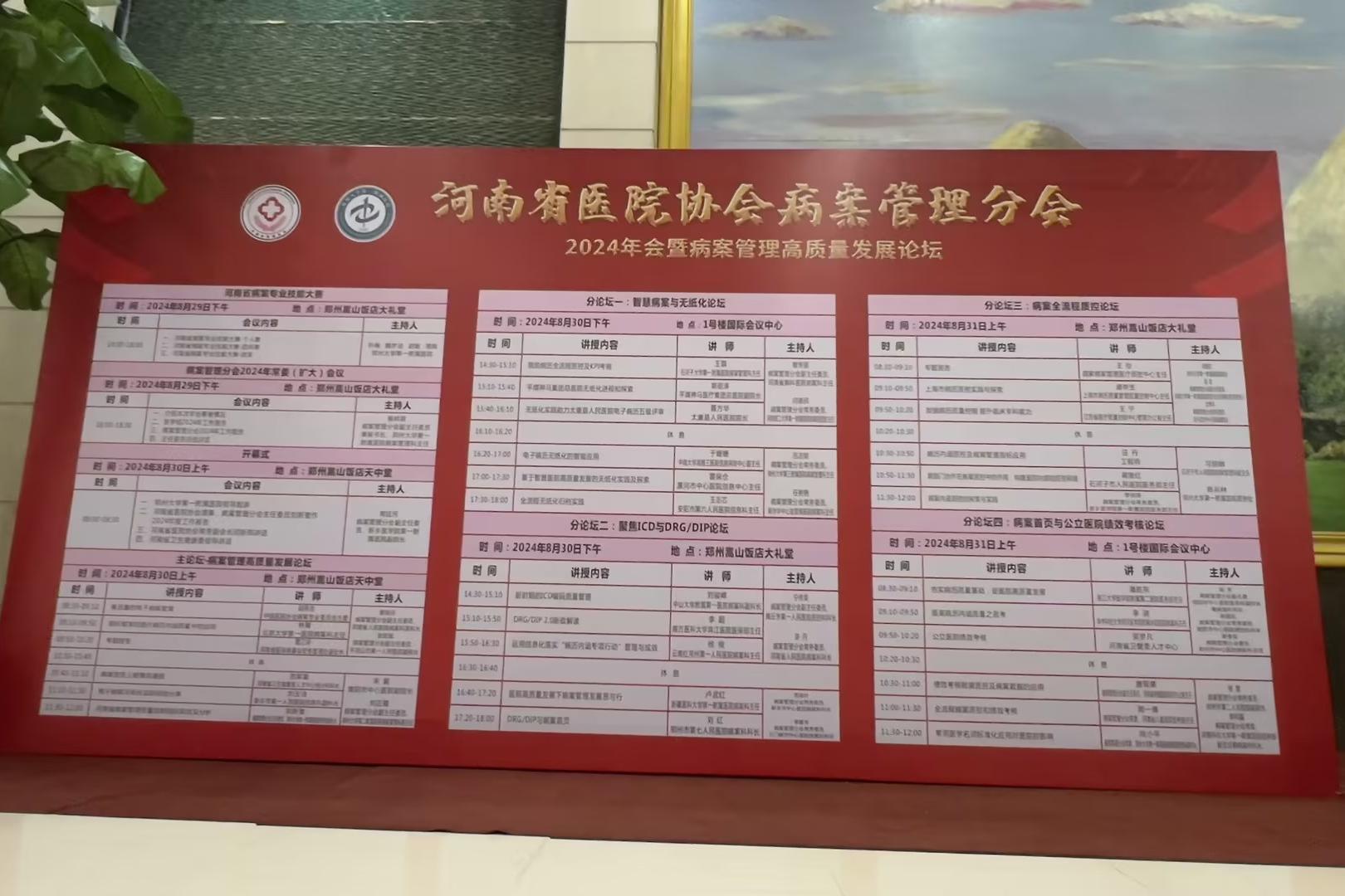 8月29日-31日,河南省医院协会病案管理分会2024年会暨病案管理高质量发展论坛在商都郑州隆重举办。大会设立专业技能大赛、主会场开幕式、学术分论坛等,邀请全国知名专家学者,针对病案管理、智慧病案与无纸化、ICD与DRG/DIP、病案全流程质控、病案首页与公立医院绩效考核进行前沿分享,进一步发挥病案管理在医疗卫生体制改革中的作用,提升各级医疗机构病案管理能力。